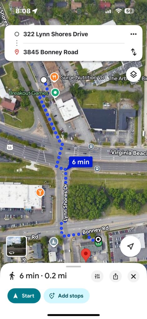 I’m located in the same plaza as 7-11 on Lynn Shores Dr, which is just off of Virginia Beach Blvd.